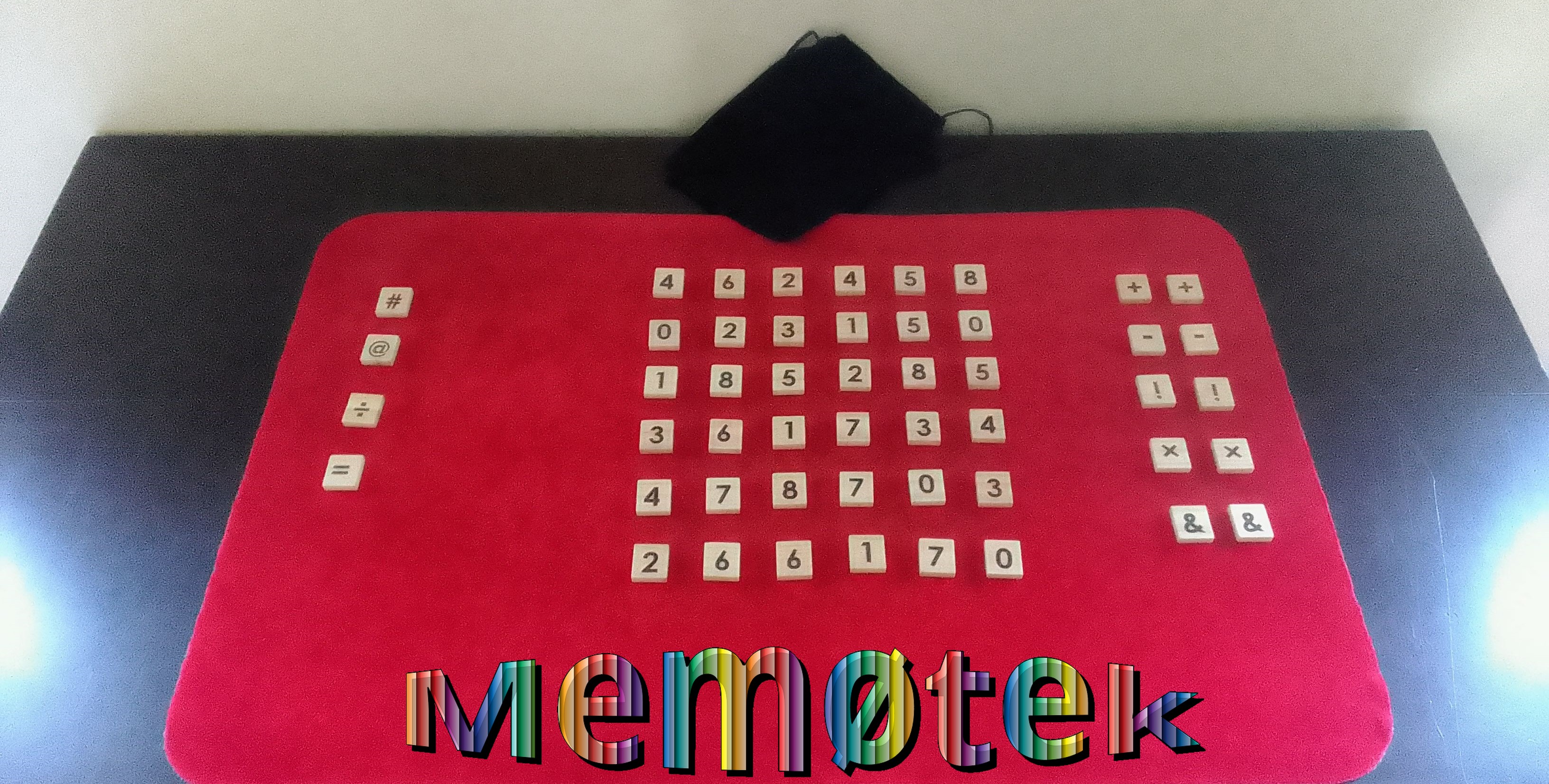 Dans "Memøtek", il faudra user de votre mémoire et de votre sens de la communication pour battre vos adversaires. Plus vous avancerez dans les niveaux de difficulté, plus votre mémoire sera affûtée. Votre objectif sera de collecter un maximum de pièces pour remporter la partie. Pour cela, il faudra obtenir un complément à 9 avec deux pièces retournées ( le 1 avec le 8, le 2 avec le 7, le 3 avec le 6 et le 4 avec le 5 ). Attention, les zéros ( 0 ) sont punitifs, ils vous feront passer votre tour. Les caractères spéciaux vont pimenter la partie pour permettre aux joueurs d'interagir. Avec ce supplément, le jeu devient stratégique, collaboratif, évolutif et addictif.